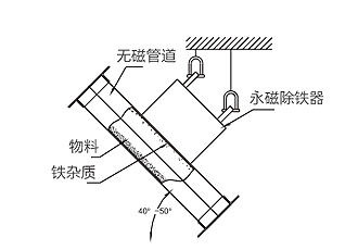 適合沒有輸送皮帶,只能提供下料溜槽的場合。當(dāng)散狀物料經(jīng)過時,鐵雜物被高磁場的永磁鐵吸附,處理鐵雜質(zhì)時,打開管道專用門將雜質(zhì)人工取除。該設(shè)備適用于含鐵量較少的場合,主要應(yīng)用于水泥、化工、煤炭、塑料、耐火材料、建材等行業(yè)的下料管道中處理雜質(zhì)。