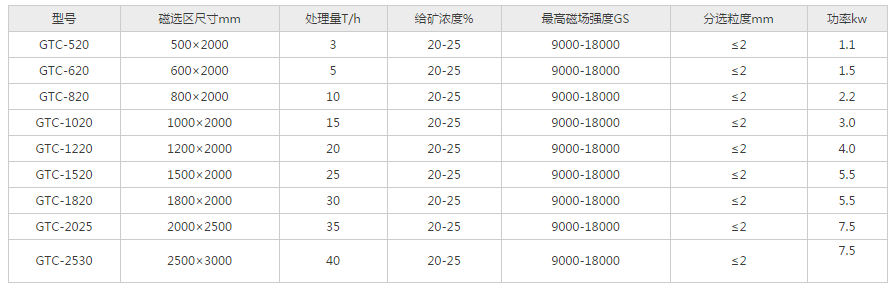 GTC型平板式高梯度磁選機主要適用于粒度5mm以下的弱磁性礦物的磁選及非金屬礦物的除鐵,如:云母粉、石英砂、鉀長石、霞石、螢石、硅線石、鋰輝石、高嶺土、錳礦、弱磁鐵礦、磁黃鐵礦、焙燒礦、鈦鐵礦、赤鐵礦、褐鐵礦、菱鐵礦、鈦鐵礦、鉻鐵礦、黑鎢礦、鉭鈮礦、赤泥等。也可用于煤、非金屬礦、建材等物料的除鐵作業。